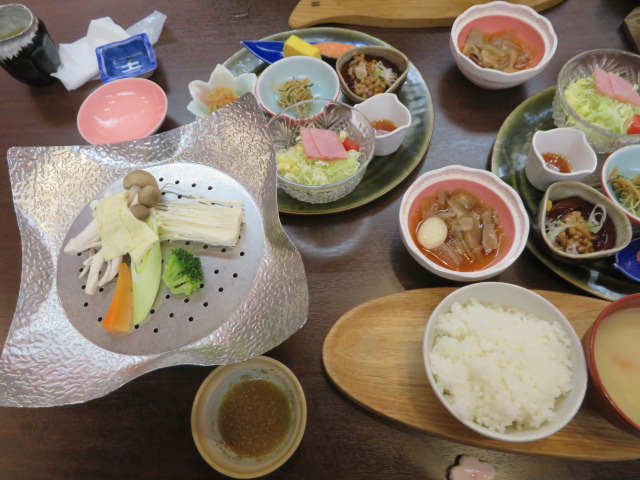 益子市街の南東の山間部にある温泉宿です、一軒宿の温泉でそこそこの規模でフロントやお土産屋がある棟、レストラン・大浴場がある温泉棟、宿泊するホテル棟に分かれていました、温泉は露天風呂がある大浴場でゆっくり入浴出来ました、食事は地元の野菜を利用した料理を食べることができました、夕食・朝食ともほぼ満足して食べることが出来ました、館内には陶芸の町益子にあるホテルらしく陶器類が多く展示されていました。