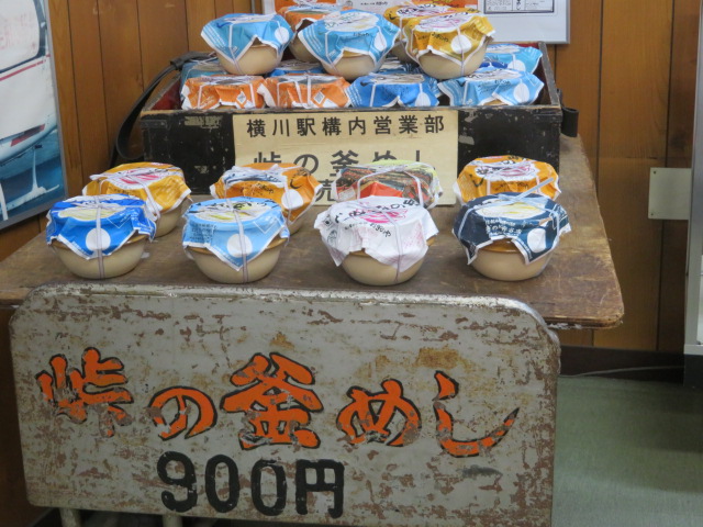 JR信越本線横川駅前、釜めしの荻野屋本店前にある資料館です、日本で一番歴史がある駅弁業者で峠の釜めし発売元の荻野屋の歴史がわかります、資料館は無料で行った時には誰もいなくライトは消えていたので自分でスイッチを入れて明るくしました、館内には釜めしで使われいる益子焼の釜の紹介、今まで荻野屋で販売した駅弁の展示、創業時からの紹介などパネル・ポスターなどで案内されています、他に鉄道関連の品、アプト式機関車関連の品の展示がされていました。