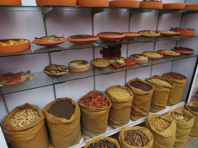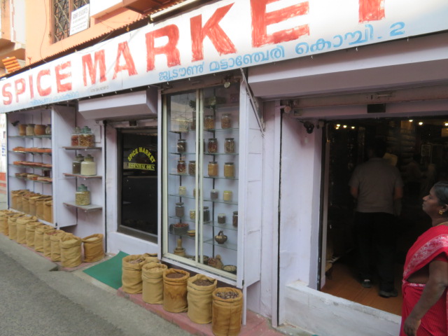 コーチ市内のマッタンチェリー地区ジュータウンを散策しながらスパイスマーケットに入りました、道路沿いの店先に各種スパイスが並んで展示されています、そばによると匂いがしてインドらしさを感じました、インドに来たのだからぜひスパイスをお土産にということで店内に並んで商品を見て選びました、試食は出来ないので買うときの判断はできませんが少しならと思いお土産にしました。