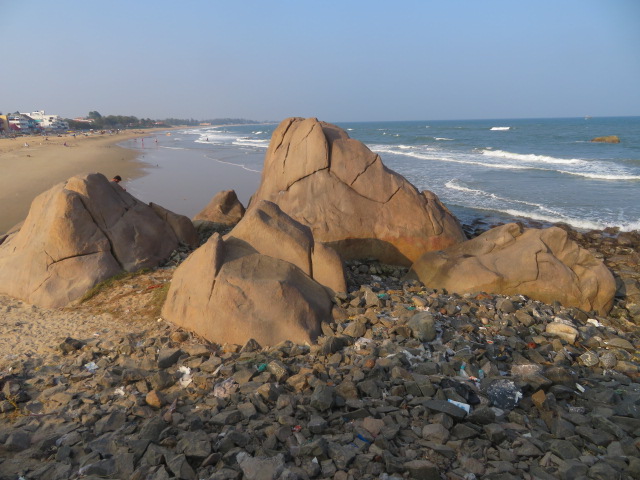 チェンナイから2時間位移動してマハーバリプラムに到着、世界遺産に登録されている遺跡群をガイドさんの案内で散策しながら見物しました。