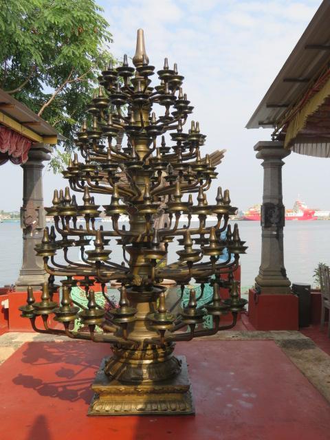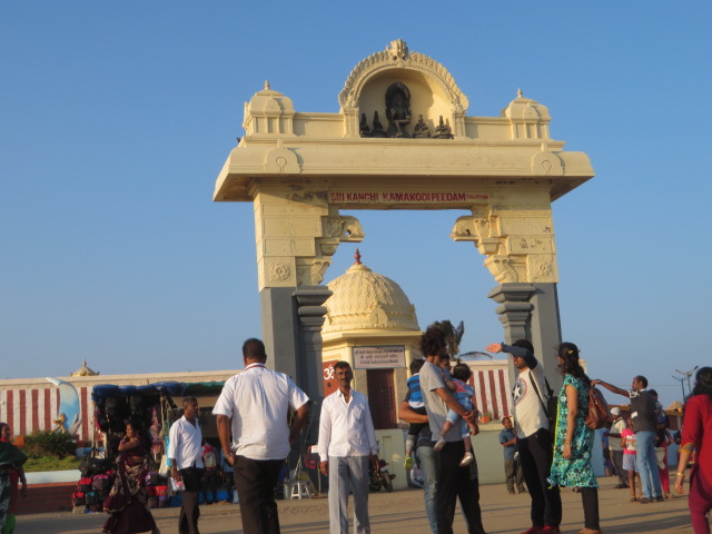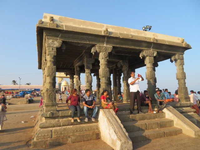 カーニャクマリのコモリン岬はアラビア海、インド洋、ベンガル湾の3つの海が合流するするインド最南端の場所です、ここで周辺の眺めと散策を楽しみました、岬を表示するような標柱は見当たらないでした、岬目の前の広場には露店が多く出ていました、そばにヒンズー寺院や記念堂があり寄ることが出来ます、日の出、日の入りのスポットとして人気があり朝夕は人が多いです、岬沖にはヴィヴェーカーナンダ岩・記念堂とティルヴァッルヴァル像があり眺めました。