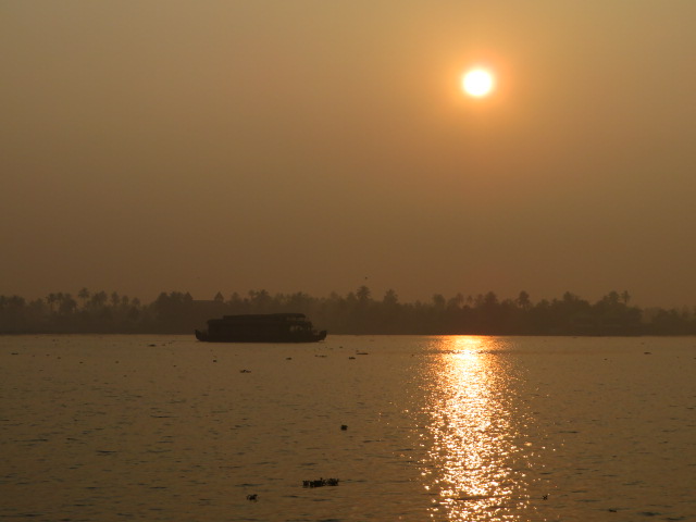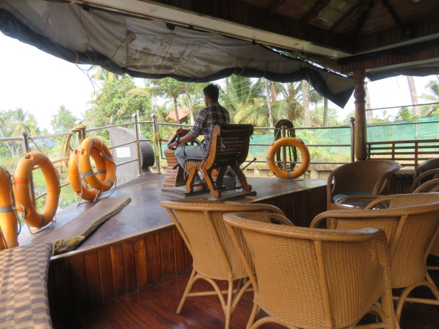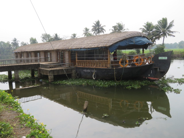 カーニャクマリから移動してアラップーラ(アレッピー)の乗船場まで行き、8人で貸切でハウスボートを利用しました、1泊しました、食事は乗船してすぐ昼食を取り、夕食と翌日の朝食も取りました、食事はホテルで食べたインド料理とほぼ同じようでした、客室はツインルームで部屋はちょっと狭いです、エアコンはついているので涼しかったですがシャワーの出は良くなかったです、快適ではないですがいい体験が出来ました。