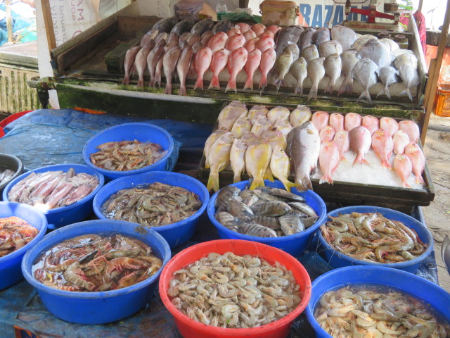 遊歩道沿いには魚を売る露店があります、魚の他民芸品などお土産類を売る露店も並んでいました、コーチの人気ある名所で観光客の多くが訪れるようです。- 旅行時期