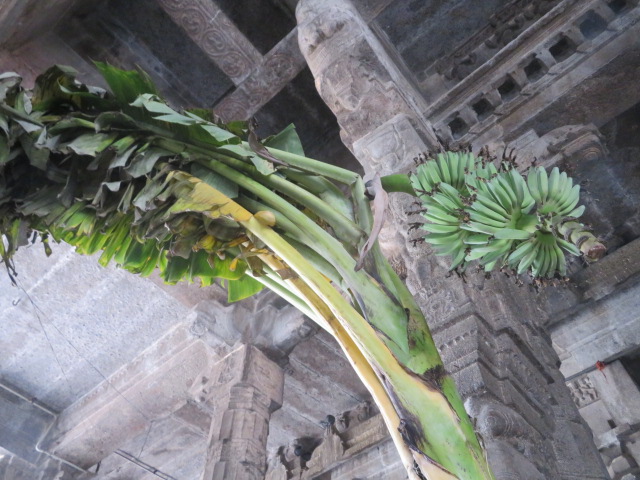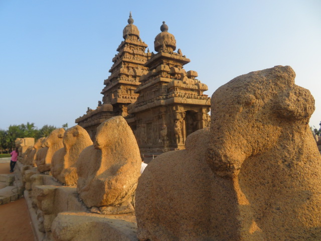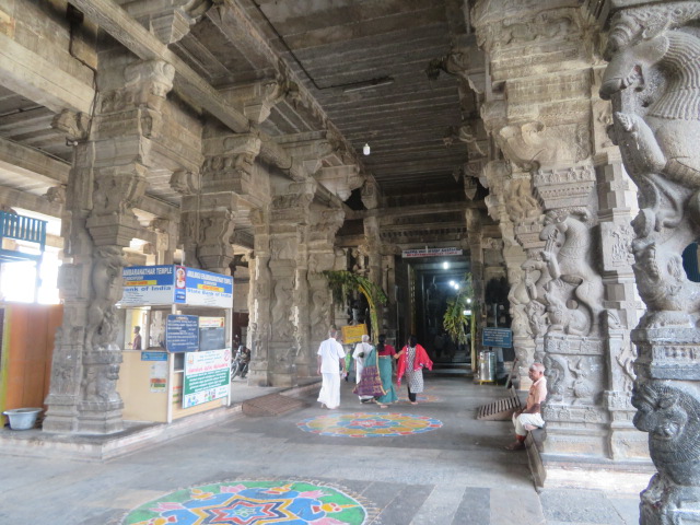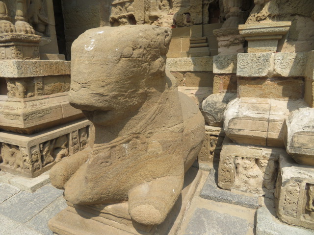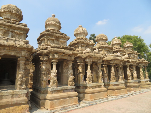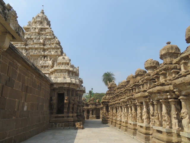 エーカンバラナータル寺院を見てからカーンチープラム最古の寺院であるカイラーサナータル寺院の観光をしました、ここには本堂の他、保存状態がいい小祠堂が50以上あります、それぞれの堂を見ながら歩きました、動物や人物の彫刻が見ごたえがあります、それぞれ違った像をじっくり見ました、塗られた像の部分的には色があせていますが歴史を感じさせてくれます、丁度行った時には欧米人も熱心に見ていました。