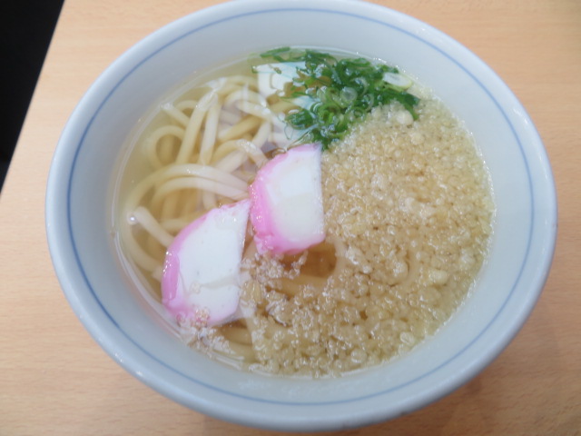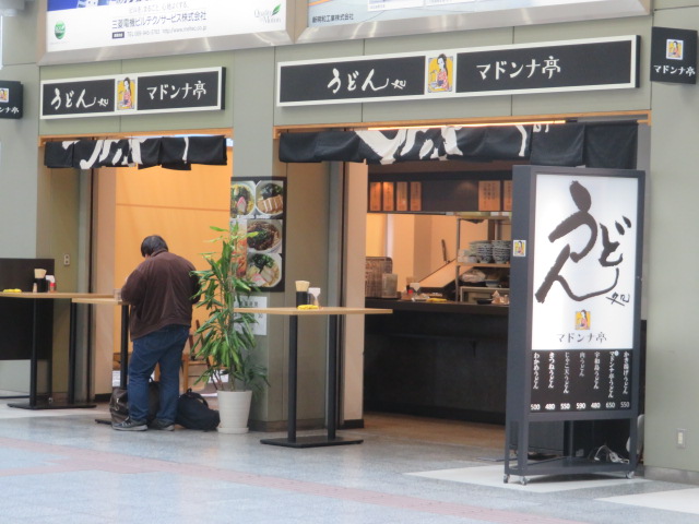 松山空港1階の到着ロビーにある立ち食いのうどん屋さんです、空いていたので入りました、一番安いかけうどんを食べました、券売機で食券を買ってから作ってもらいます、四国らしいかつおだしが効いたつゆでした、うどんは普通です、お値段は空港にしては安く食べることができますが街中の立食いよりは多少高め、短時間で食べることが出来るので便利です。