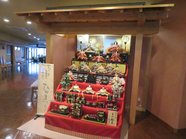 食事は朝食のみの利用でしたが食事処でハーフバイキングでした、料理の内容は良かったです、美味しく食べることが出来ました、スタッフは親切で感じが良かったです、館内には雛人形が飾られています、玄関付近には段飾りの人形と歴史ある雛人形が年中飾ってあるようです。- 旅行時期