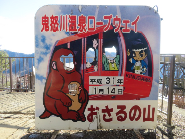 鬼怒川温泉街の北西、国道121号線からちょっと山側に入った場所にあります、駐車場がある山麓駅から延長621m所要時間約4分で丸山の山頂駅まで行けます、定員30名の小さなロープウエイです、山頂には高さ8.6m(標高約710m)の空中展望台があり、眼下に鬼怒川温泉街が見え、遠くには那須連山や筑波山が見えます、展望台横におさるの山があり無料で入れます、約30匹ほどいるようで100円で餌を買って与えることもできます、飛び回っている猿を見ることが出来ました、車以外の人は鬼怒川温泉駅前から無料の送迎バスがあり便利です。
