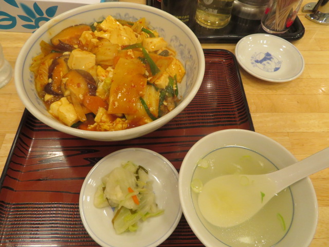 東武スカイツリーライン越谷駅前にあるツインシティビルAの1階道路沿いにあります、11月限定の丼、旨辛豆腐丼(594円)を食べました、ちょっと辛いたれを使って豆腐やシイタケが入った丼で味は良かったです、餃子は一皿237円でした、月と木は持ち帰りの餃子が安いです、カウンター席が多くあるので一人でも気楽に利用できました。