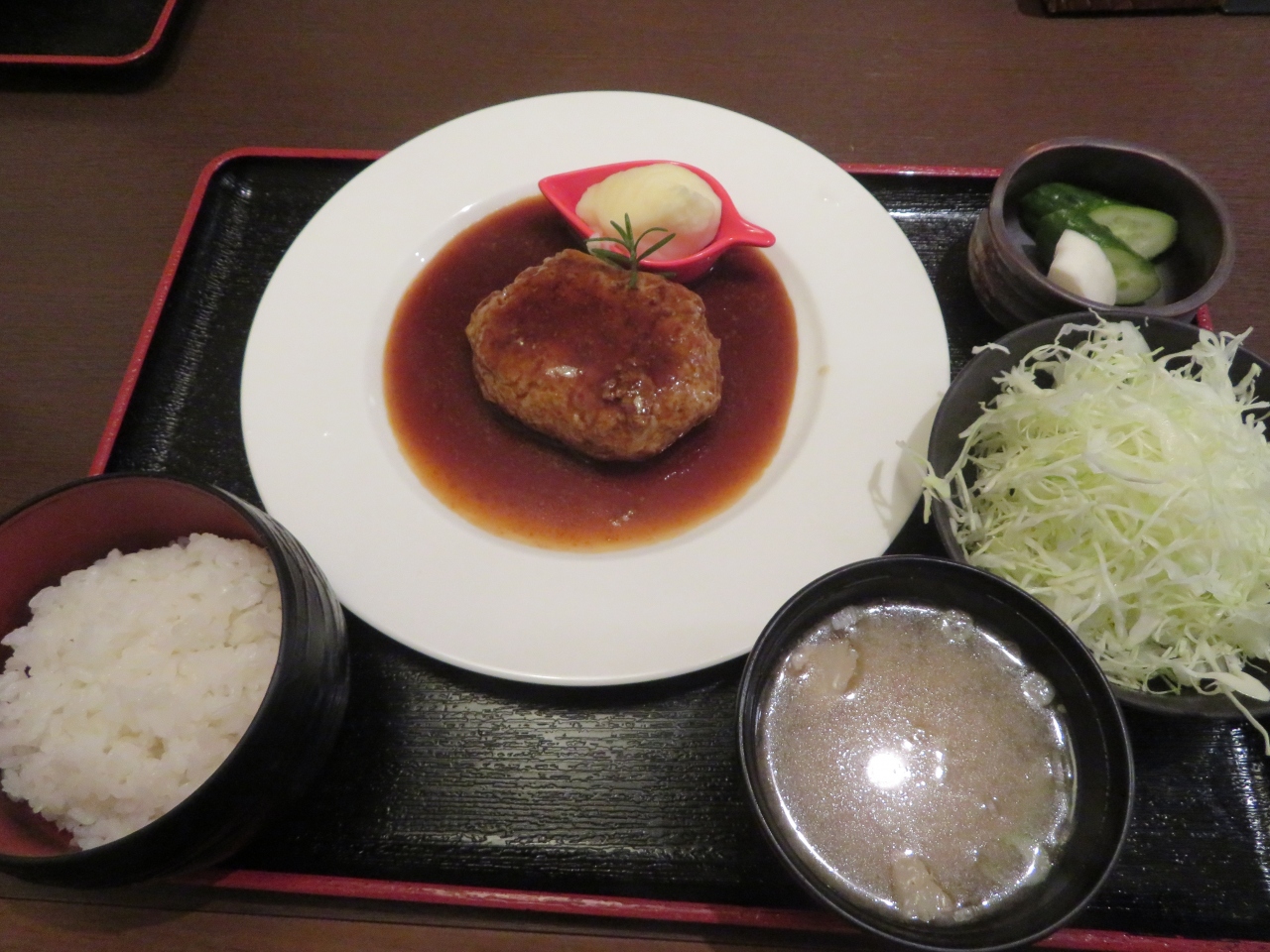 道の駅はなぞのの前国道140号線を挟んであります、道の駅はなぞのの食堂が混んでいたので行きました、一関市にある館ヶ森アーク牧場の高原豚を使用したこだわりのレストランです、とんかつとハンバーグが主で多種類あります、今回はデミグラスソースのハンバーグ(1382円)を食べました、味は普通でした、昼時でしたので多くの人が入っていました。