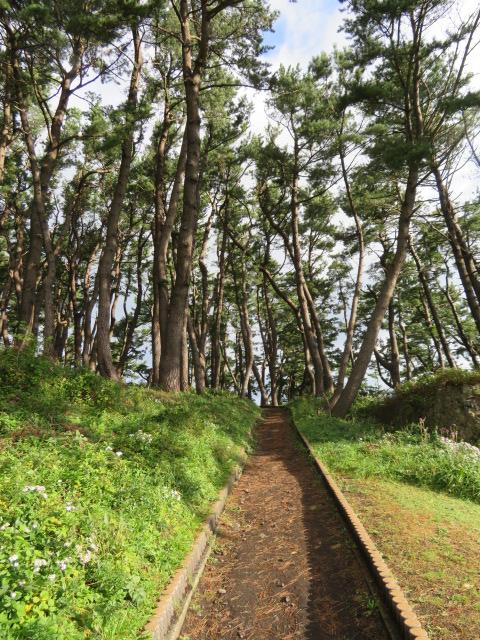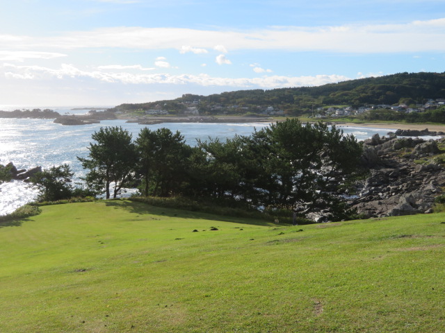 八戸市の東部にある太平洋沿いの海岸で三陸復興国立公園内にあります、国の名勝になっています、インホメーションがある場所に車を停めて歩きました、朝が早かったのでインホメーションは閉まっていました、県道1号線の道路を渡って天然芝生地に、太平洋の眺めを楽しみながら歩きました、そのまま松林がある淀の松原の遊歩道を歩きました、自然を満喫することが出来ました。
