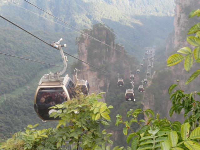 天子山自然保護区の散策を終えた後、帰りに乗車しました、6に乗りのゴンドラで車内から風景が丸見えの為、乗車しながら改めて天子山の景色を楽しむことが出来ました、乗ってすぐが特にいいと思います、奇岩群がそばにあり良かったです、少し降りると霧がかかって見ずらくなりました、乗り心地は普通でした。