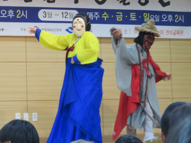 公演は1時間位で村の安寧と豊作を祈願して12世紀半ばから河回村で行われてきた伝統芸能、ユーモラスな格好をした人などが踊ったりして演技を見せてくれました。- 旅行時期