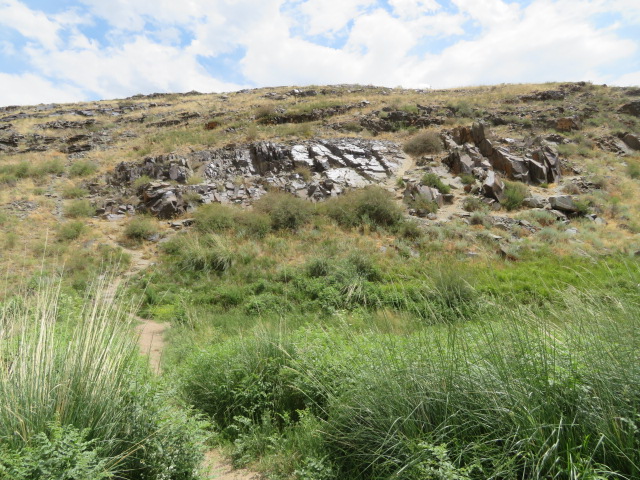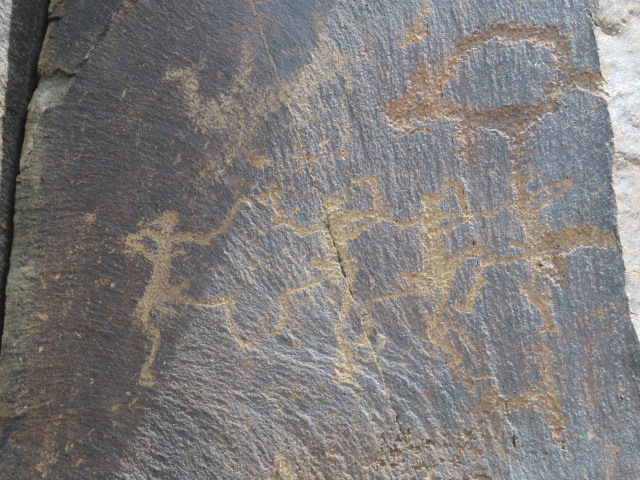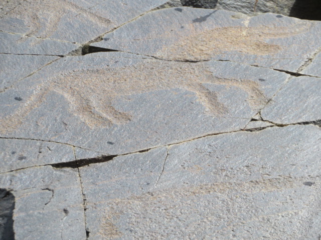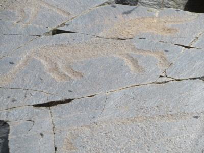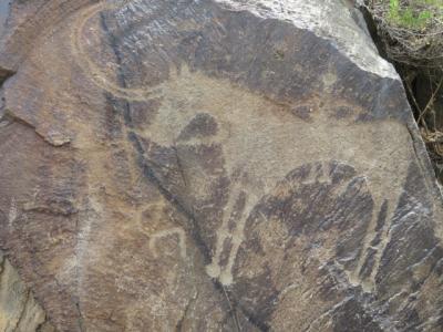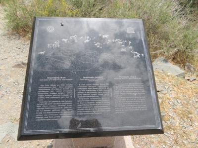 キルギスのビシュケクからカザフスタンのアルマトイに移動した時、途中から北に入り草原を移動して小高い山の山麓にある岩絵群に行きました。
