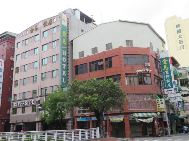 台鐵高雄駅・MRT紅線高雄車站から歩いて5分位の第2号運河沿いにあるビジネスホテル、金馬ホテルの表示があります、周辺に飲食店やコンビニがあり便利です。