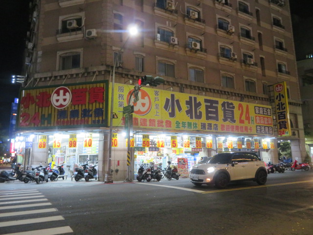 中正四路沿い瑞源路との角にあります、前にカインドネスホテルがあります、雑貨中心のディスカウントストアチェーン店で24時間営業です、コンビニと比べると安いのでいつも小北百貨では飲物やエナジードリンクを買います、今回も買いました、パイナップルケーキなどお土産になるお菓子類もあります。