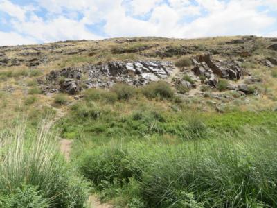 草原にある駐車場から散策路を歩いて山麓にある世界遺産の岩絵を見ました、山麓にある歩きづらい道を歩いて岩絵のそばまで行きガイドさんの説明を受けながら見ることが出来ました、馬や羊・やぎなどの動物の絵が描かれていました、周辺は木陰が無く暑い中歩きました、場所が不便なので観光客は少なかったです。- 旅行時期