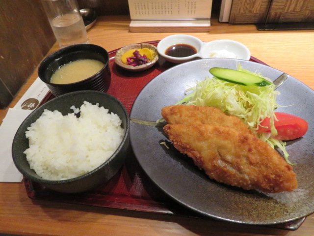 炭火串焼き・串揚げのお店で昼間はランチが食べられ、夜は居酒屋として一杯、場所が便利な八条口、近鉄名店街みやこみちにあります、電車の時間に合わせて飲んだり、食べたり出来ます、今回はお手頃価格のランチタイムに寄りました、私は人気のかきフライ定食、同行者はさかなのフライ定食を食べました、同行者がお店の近くに住んでいてお勧めのお店ということで入りました、美味しく食べることが出来ました、とても良かったです。