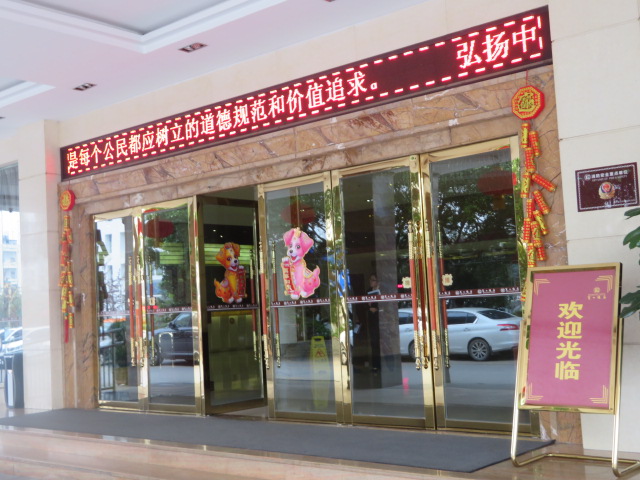 南寧市街のほぼ中心民主路沿いの高台にあります、友愛南路との交差点からすぐで街の中心朝陽路まですぐ行けます、周辺に飲食店やコンビニもあるので便利です、百貨店もちょっと歩くとありました、建物はちょっと古いようですが部屋は綺麗でした、スタッフの一人は少し日本語が喋れました、朝食は別料金で食べました、一応の食べ物はありましたので良かったです。