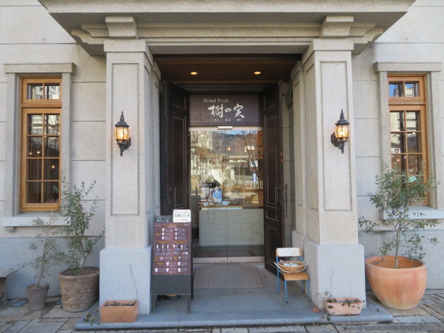 甲府駅北口の東側にある甲州夢小路の中、入口付近にあります、蔵造りの建物が並ぶ飲食店の一軒でドライフルーツを販売しています、店内には果物各種のドライフルーツがあります、店内にはカフェスペースがあり、そこで各種ドリンクを飲んだり、ソフトクリームを食べたりできます、私は甲州産の桃を使った白桃ジュースを飲みました、美味しかったです。