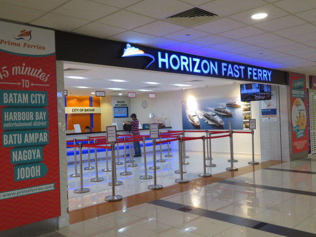 MRTハーバーフロント駅からショッピングモールのビボシティ内を歩いてフェリーターミナルに行きました、フェリーターミナルは国際旅客ターミナルになっていてインドネシア・バタム島への国際航路があります、ここからバタム島の各港まで高速船が出ています、私はHORIZONの高速船でバタム島・ハーバーベイまで乗船しました、港には多くのインドネシアの人もいました。