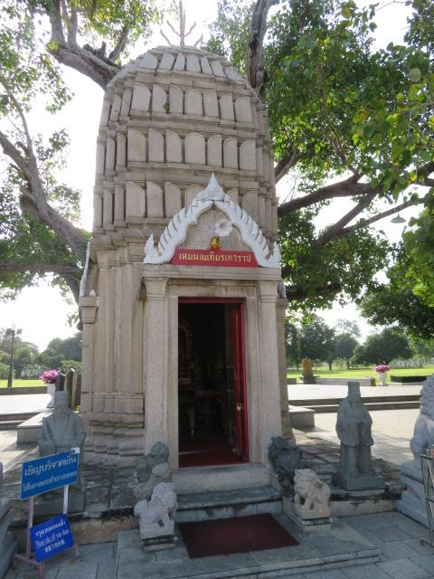 アユタヤのバーンパイン離宮にあります、広大な庭園とお大きな池、タイ風や欧風の建物があるなかクメール調の建物がありました、入口から近い場所、散策路沿いの菩提樹の麓にありました、1880年にできた歴史ある建物で中に仏像が安置されていました、そばには獅子のような石像もいくつかありました。