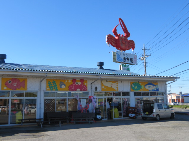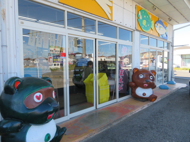 東金市街からちょっと離れた国道126号線沿いにあるお店で、前日宿泊したホテルで魚を買えるお店を教えてということでここに来ました、店内に多くの海産物があります、周辺で採れないものも置いてありました、お菓子類もたくさん並んでいました、アジの干物が店内に少ししか並んでいなかったので奥から持ってきてもらい買いました、系列のお店が千葉県内に何軒かあるようです。