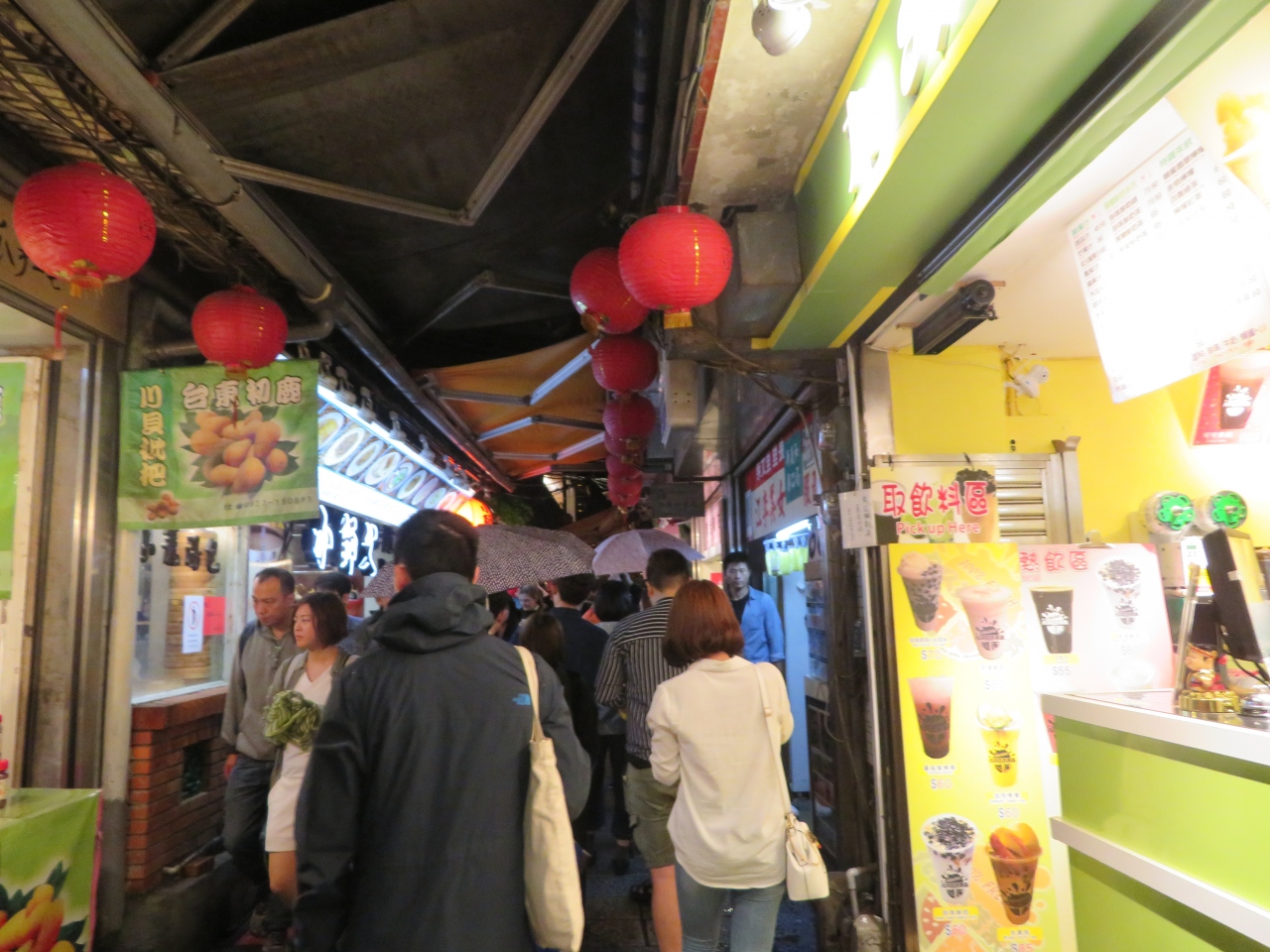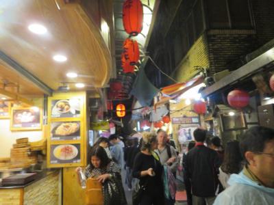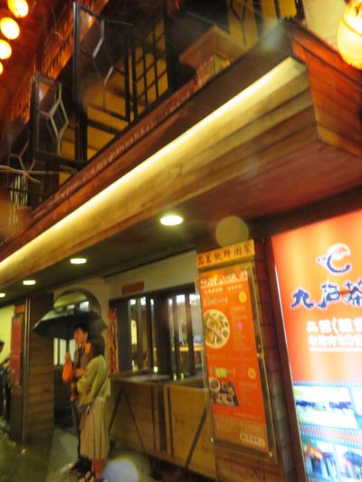 ツアーで暗くなってから九分を訪れました、夕食が九戸茶語での郷土料理でした、長い急な階段が続く豎崎路と軽便路が交差する小さな広場に面してあり、夜は赤い提灯が綺麗でした。