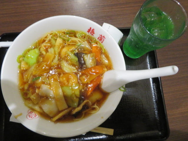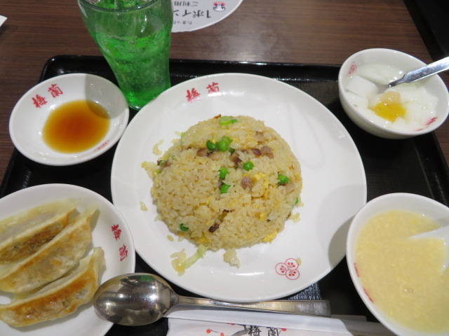 横浜中華街に本店がある梅蘭(バイラン)の支店でイオンモール春日部2階にあるフードコートにあります、梅蘭やきそばが人気があるようですが、私は炒飯セットを食べました、餃子3個、スープ、杏仁豆腐がセットで930円でした、食事をすれば飲物が100円でしたのでメロンソーダも注文しました、同行者は五目ラーメンを注文しました、料理が出るまでちょっと時間がかかりました、味は普通でした。