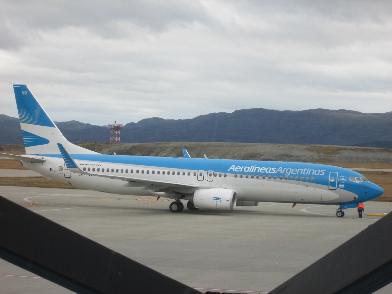 エルカラファテからアルゼンチン航空を利用して世界最南端の街・ウシュアイアの玄関であるウシュアイア空港に到着、木を豊富に利用した綺麗な空港で、ターミナルが小さいので移動が楽でした、市街中心のサンマルティン通りまでも15分位で行けますので便利です。