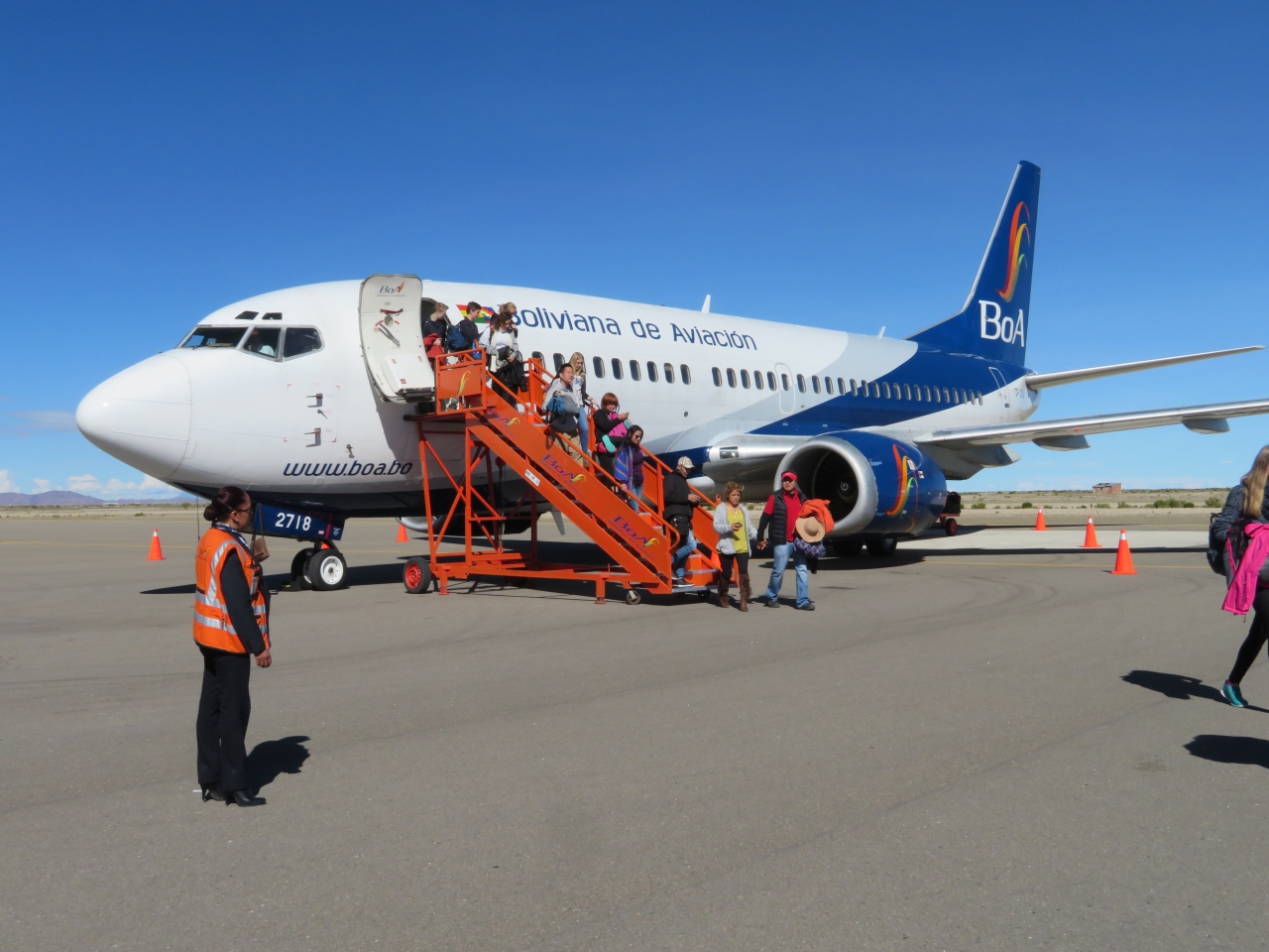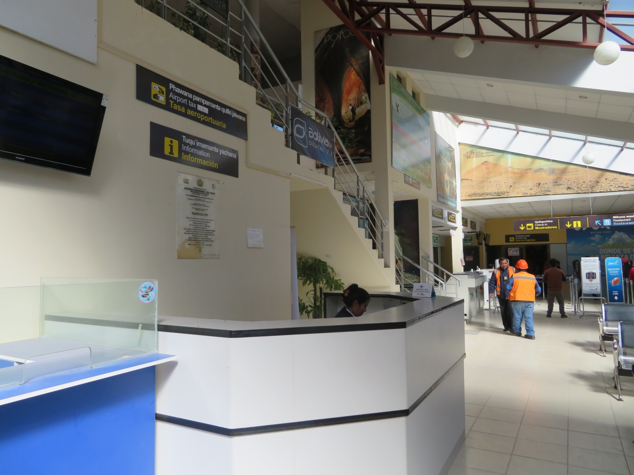 ボリビアの大人気観光地ウユニ塩湖の玄関口、ここからウユニの観光がスタートしました、小さな空港で殆どがラパスとの間飛んでいます、私たちもラパスからボリビア航空を利用して来ました、小さいので移動が少なく楽でした、ターミナル内にはお店は少ないですがインホメーションはありました、空港からウユニ市街までは約10分で近いです