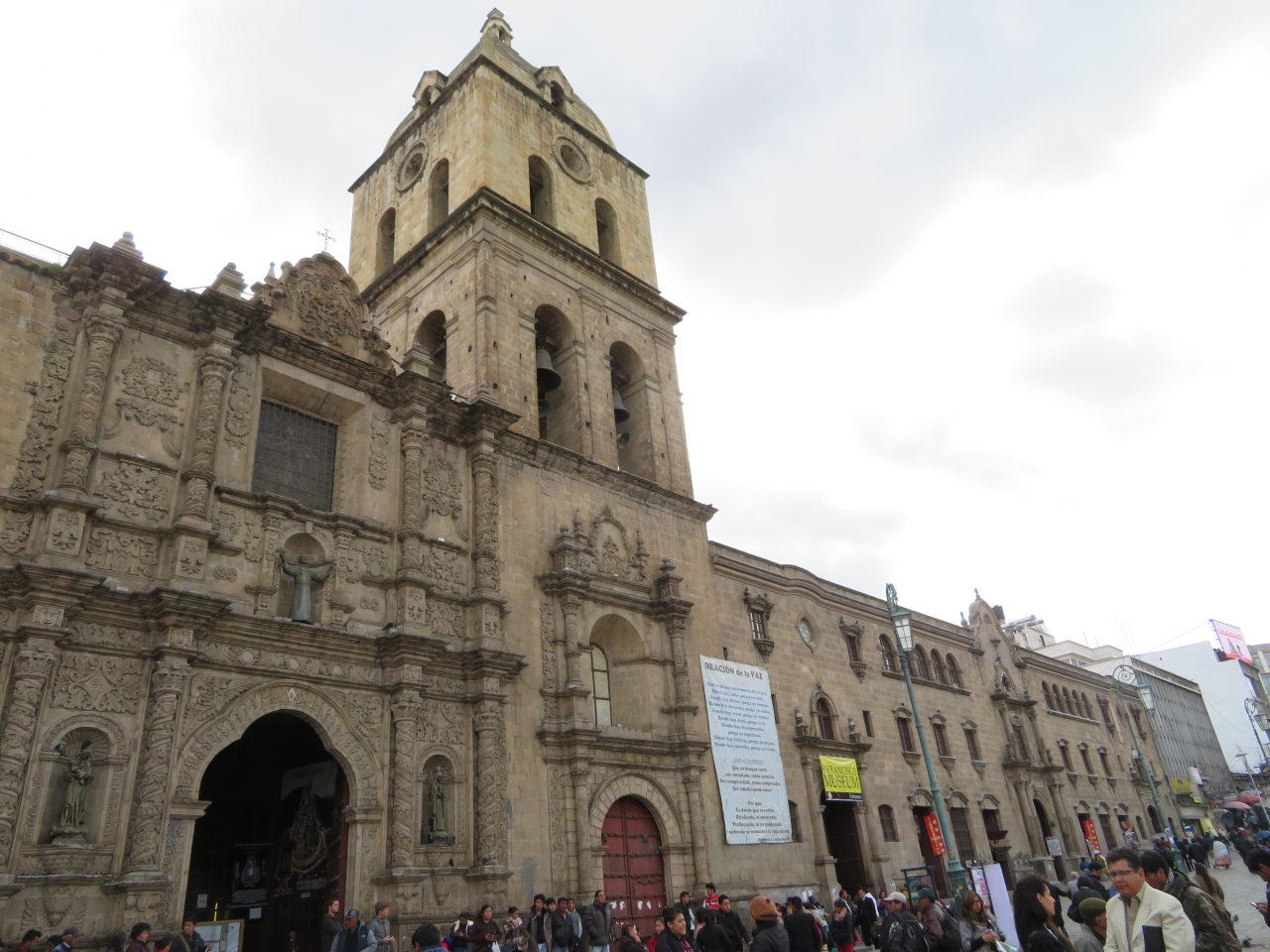 大通りのサンタクルス通りとショッピングで人気のサガルナガ通りの交差する場所にあり教会前が広場になっていて昼間は多くの人がいます、大道芸人がいたり露店が出ていたりします、建物は17世紀に再築されたバロック様式のもので内外をじっくり見るといいでしょう。