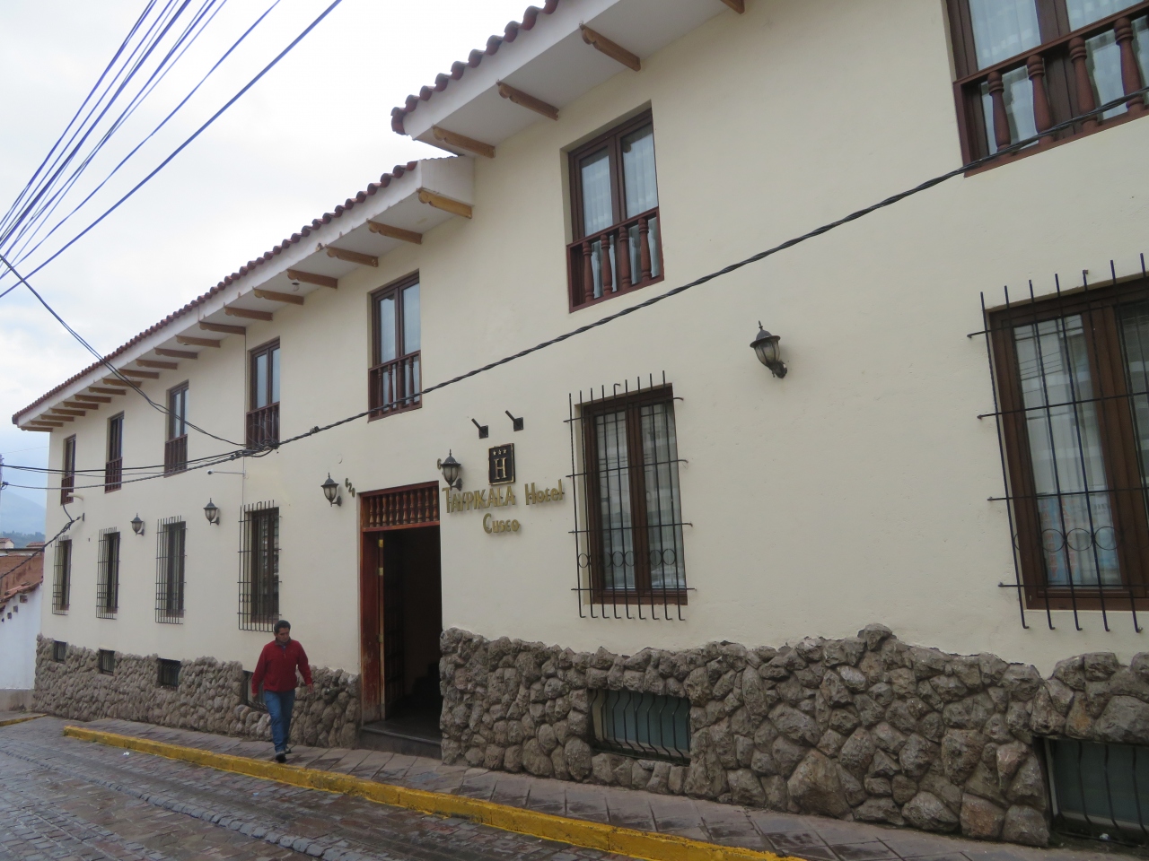 クスコのサント・ドミンゴ教会・修道院近くの石畳の狭い道路沿いにあります、入口は狭いですが中に入るとそこそこ広く中庭があります。