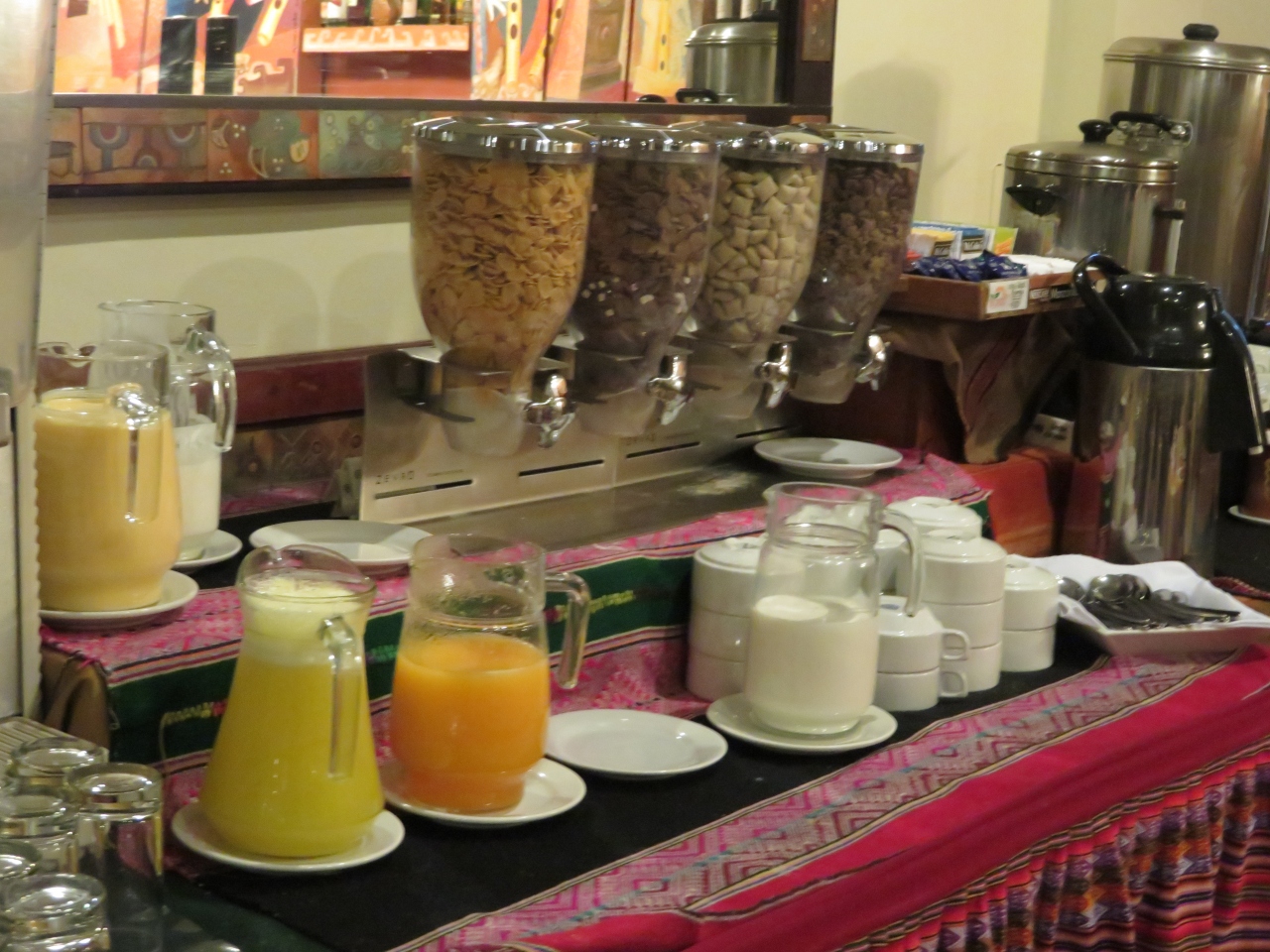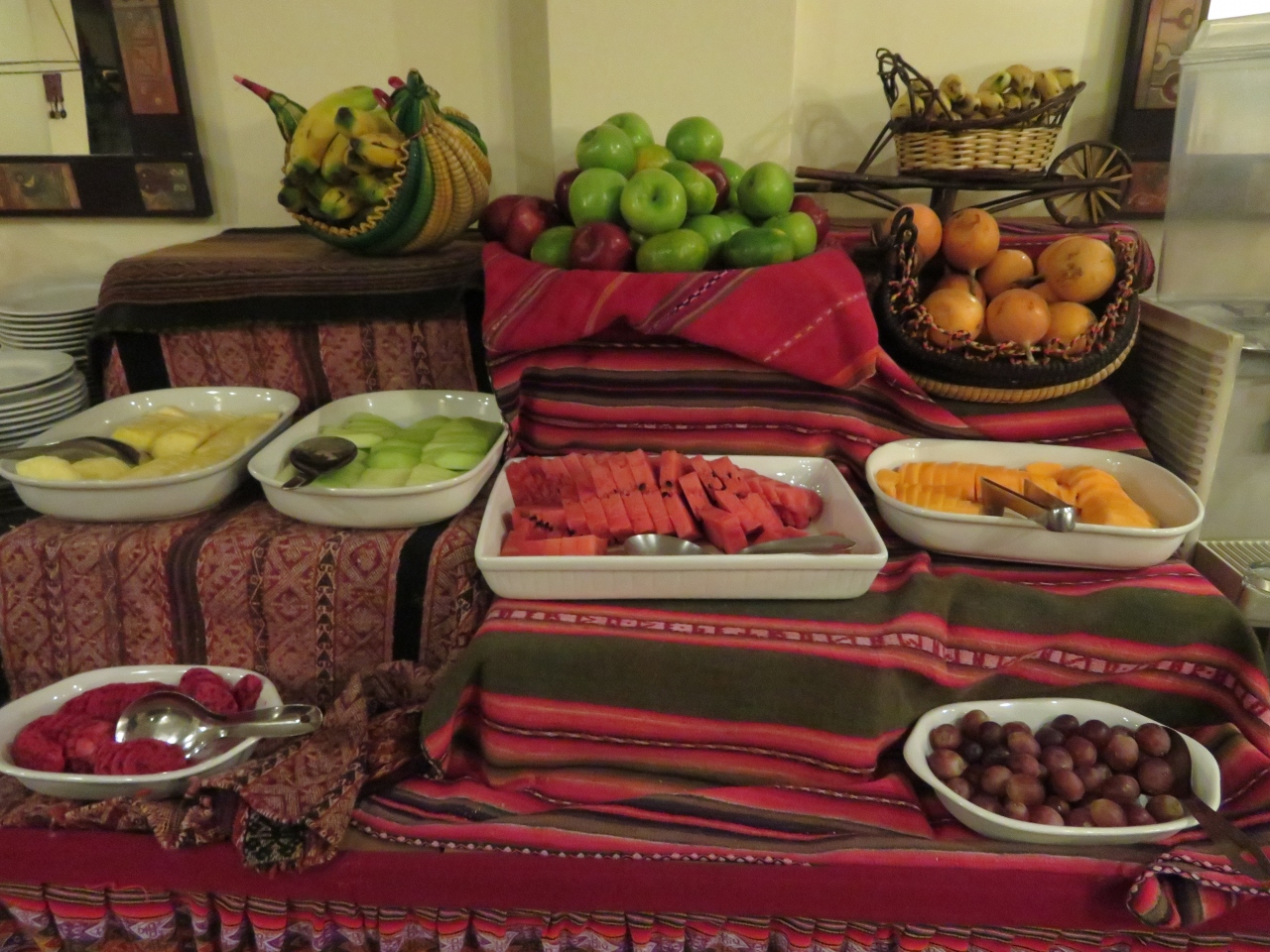 高地にあるホテルらしくロビーでコカ茶が自由に飲めます、酸素ボンベもあり、高山病の薬もフロントで販売されていました、朝食ではフルーツが多くあり良かったです、アルマス広場までは10分程歩きますがほぼ便利な場所でした。