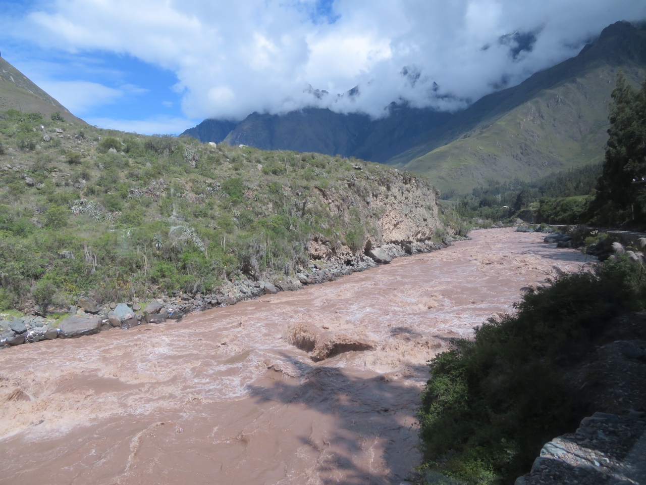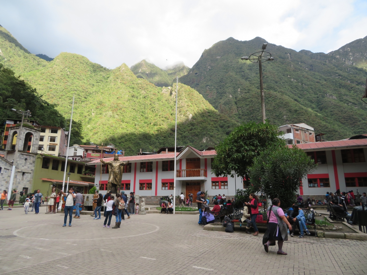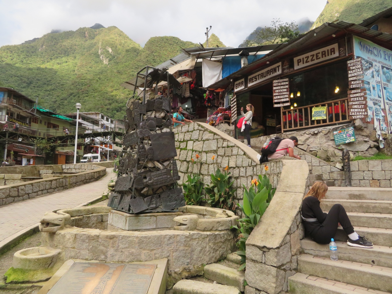 ペルーレイルのマチュピチュ駅を降りるとマチュピチュ村の市街地に入ります、村といっても農村とは違います、世界遺産のマチュピチュ遺跡へ行く入口に広がる街です、中心にアグアス・カリエンテス川が流れていて両側に街並みがあります。