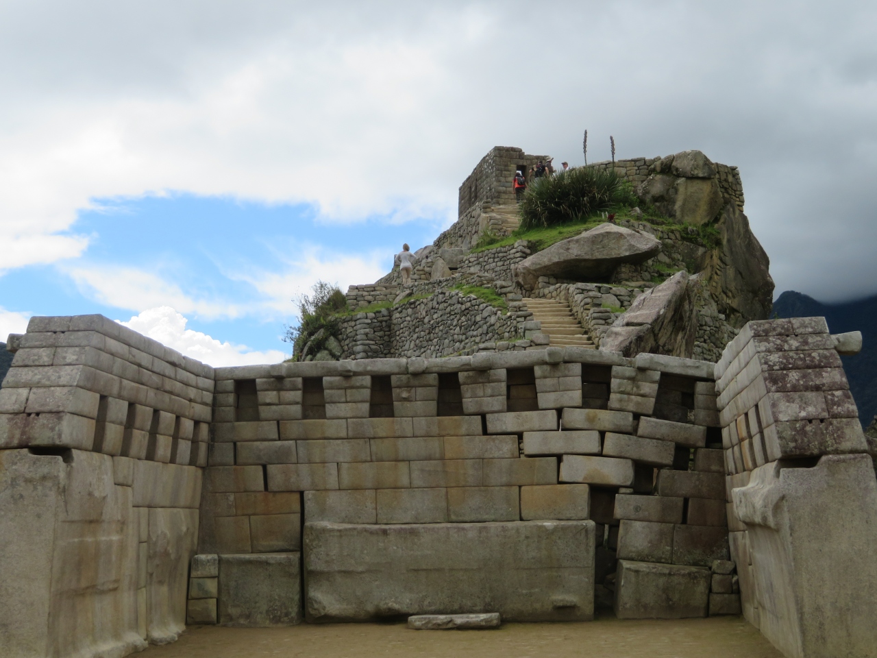 マチュピチュ遺跡群の中央付近にあり、見所が多くあります、一番高い場所にある日時計の手前にあり広場になっていて休憩するのにいい場所です、高い場所にありますので周辺の眺めが良いです。