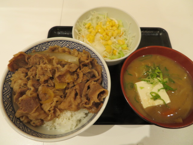 先月食べて良かったので牛丼と豚汁サラダセットを食べました、560円でお得でした、早く安く食べる時は便利でした。- 旅行時期