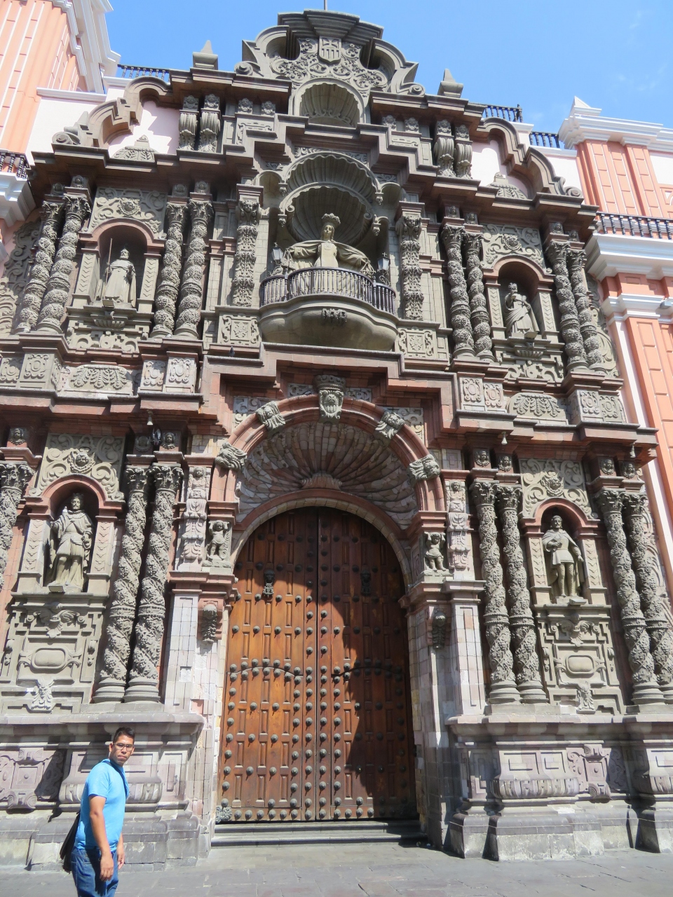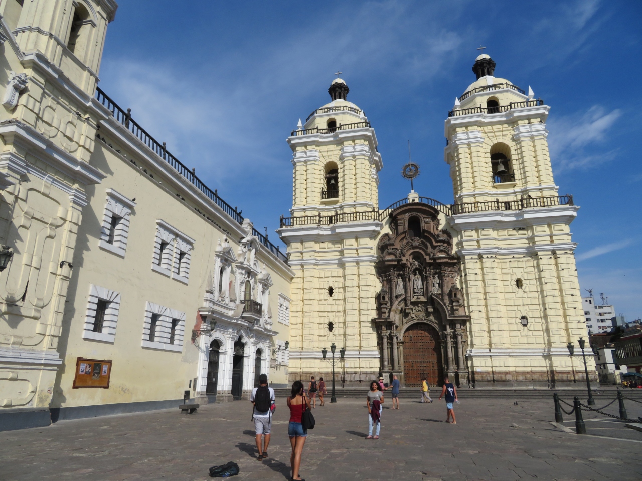 リマ旧市街・セントロにある教会ではサン・フランシスコ教会・修道院を最後に見ました、多くの観光客がいる素敵な教会の建物前で写真を撮ってから中に入りました。
