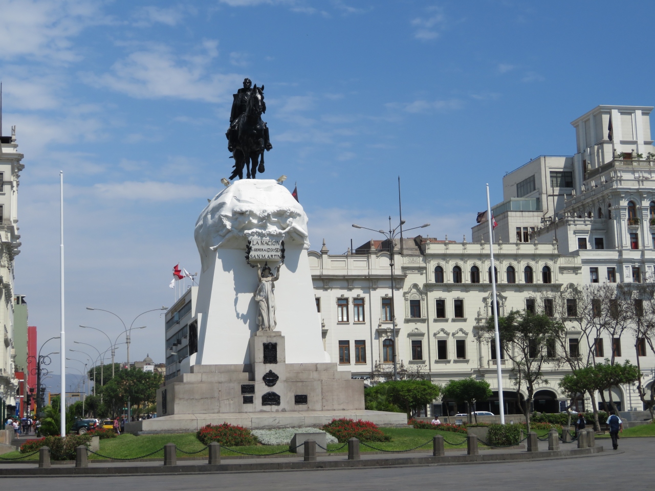 リマの旧市街・セントロにある広場で、アルマス広場と共の多くの人が来る広場で、中にペルー独立運動に貢献したサンマルティン将軍の騎馬像が建っています。