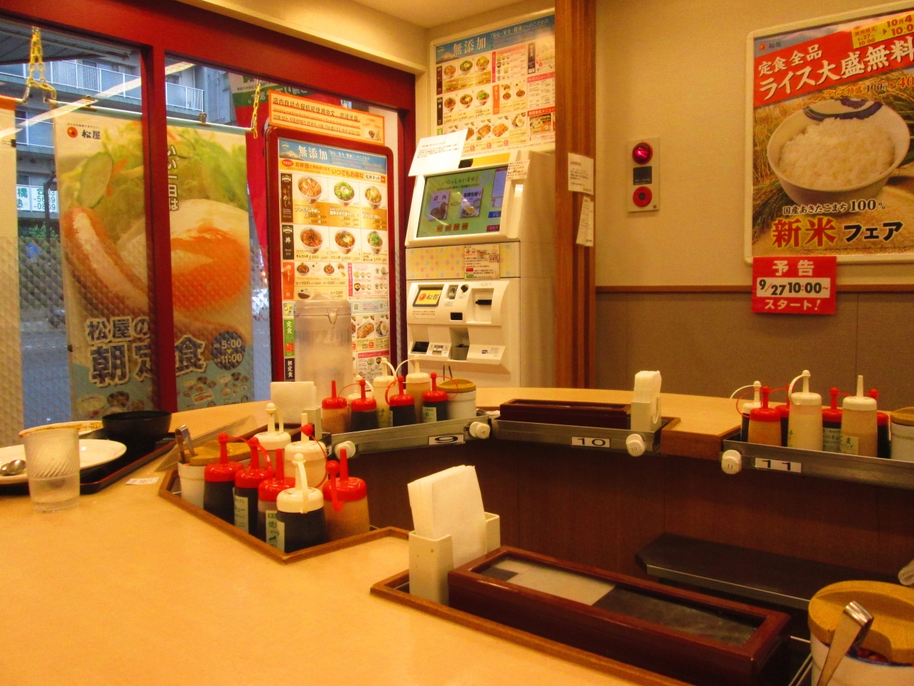 朝食を食べに行きました、場所は日光街道・国道4号線の緑町6丁目交差点そばにあります、車での利用が便利でドライブスルー対応で駐車場もそこそこ広いです、店内はカウンターの他椅子席が多くありました、今回は焼魚定食(450円)を食べました、丁度キャンペーン実施中でサービス券をもらいました。