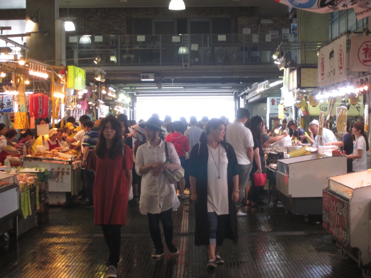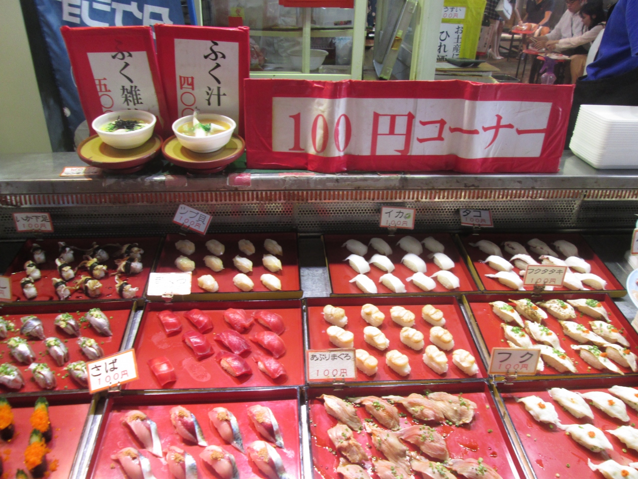 下関唐戸地区を代表する観光スポット、広い市場内には農水産物の販売店が多くあり、買物客が多く来ていました、私が行った時には韓国や中国の人達が団体で来ていて寿司などを買って食べていました、一貫百円の寿司が多くのお店で販売されていて観光客が買ったり食べたりしていました、お土産として買う商品もあり眺めながら歩きました。
