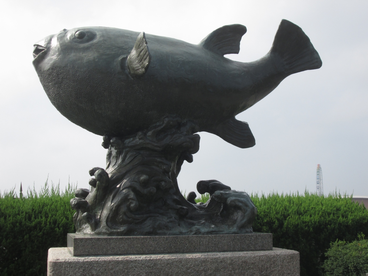 唐戸市場から国道9号線を越えると高台にあります、貞観元年(859年)創建と言われる古社、高台にありますので眺めが楽しめます、すぐ唐戸市場が見え、関門海峡は良く見えます、境内には大きなふくと亀のオブジェがあります、池には亀が何匹もいました、林芙美子の文学碑もあります。