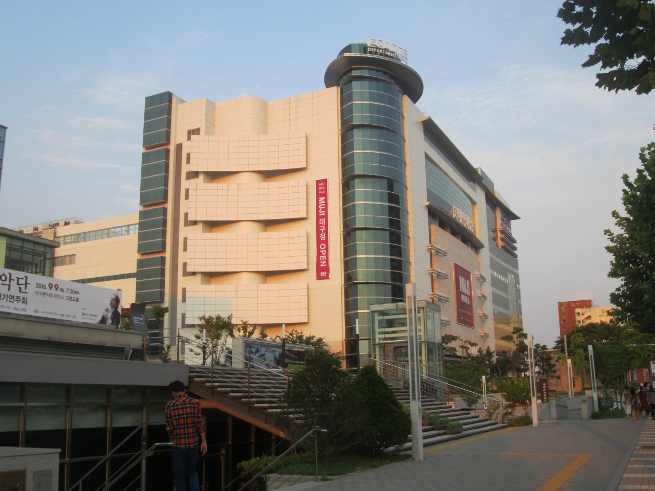 KTXの大邱駅と一体となっている駅ビルのような建物にある百貨店、駅のコンコースからそのもまま入店できます、地下には地下鉄1号線の駅と直結していますので鉄道を利用しての買物には便利です、韓国内のロッテ百貨店同様、商品自体は高めのようです、地下にはフードコートや食品売り場があり、夕方行った時は賑わっていました、日本の製品も多く取り扱っていました。