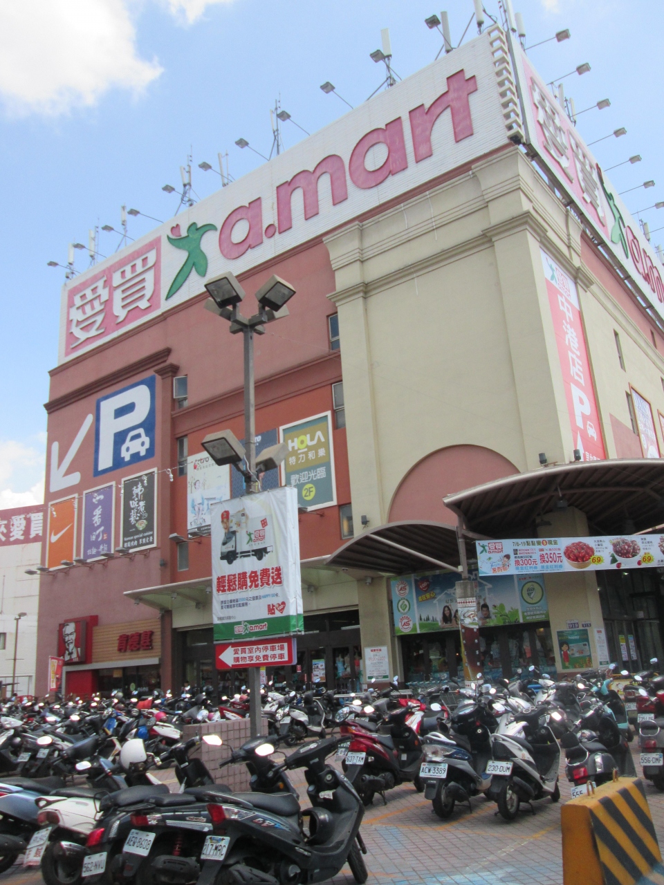 台中の市街地の台中港路沿い新光三越台中中港店と廣三SOGOの間、台中市役所そばにある大きなショッピングセンター、お店の前にたくさんのバイクが置いてありました、1階にレストラン街があります、又、ダイソーもあります、地元の人達が多く来ているようでした。