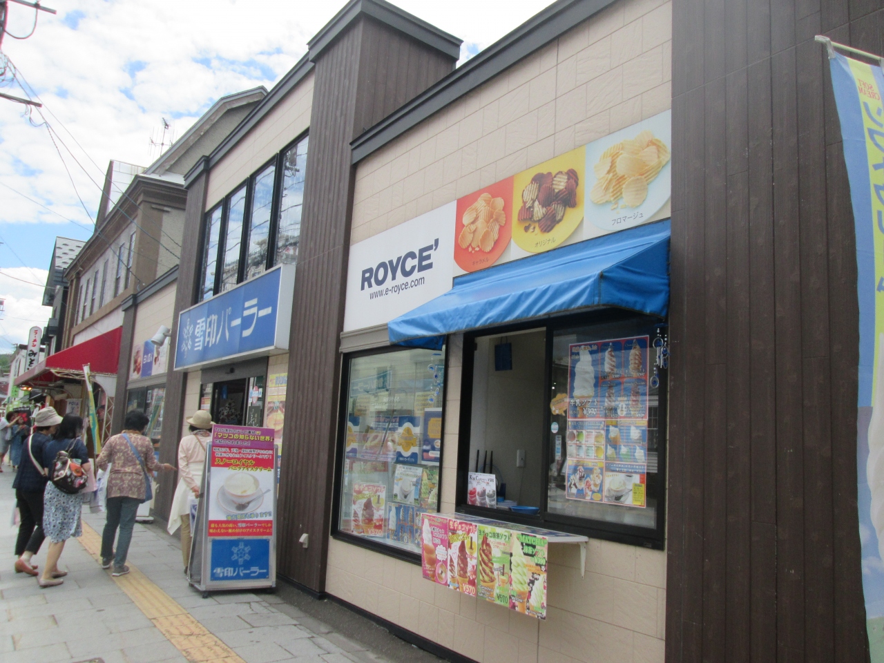 札幌にある雪印パーラーが小樽堺町通り商店街にあったので寄りました、道路沿いの店頭で、食べたかったソフトクリームを注文、賑やか小樽堺町通りを歩きながら食べました、店内にはアイスクリームも多くあり中で食べることもできます。