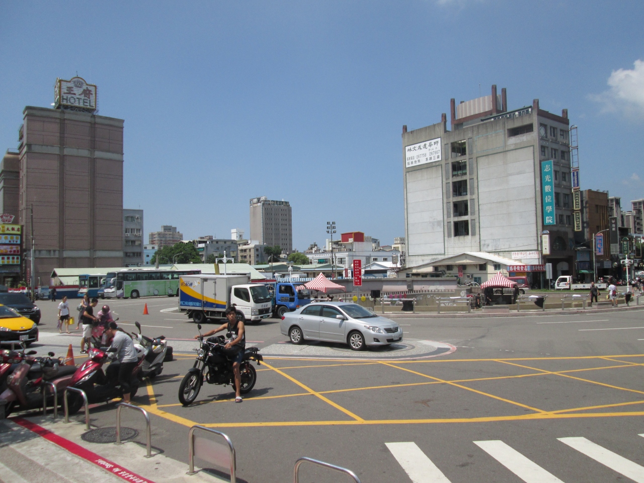 台中の市街地中心、成功路にあるホテルです、台中駅からはちょっと離れていますが、路線バスの台湾大道原子街口バス停からはすぐです、周辺には飲食店やコンビニがあり便利です、歩いてすぐの場所では中華路観光夜市が行われています。
