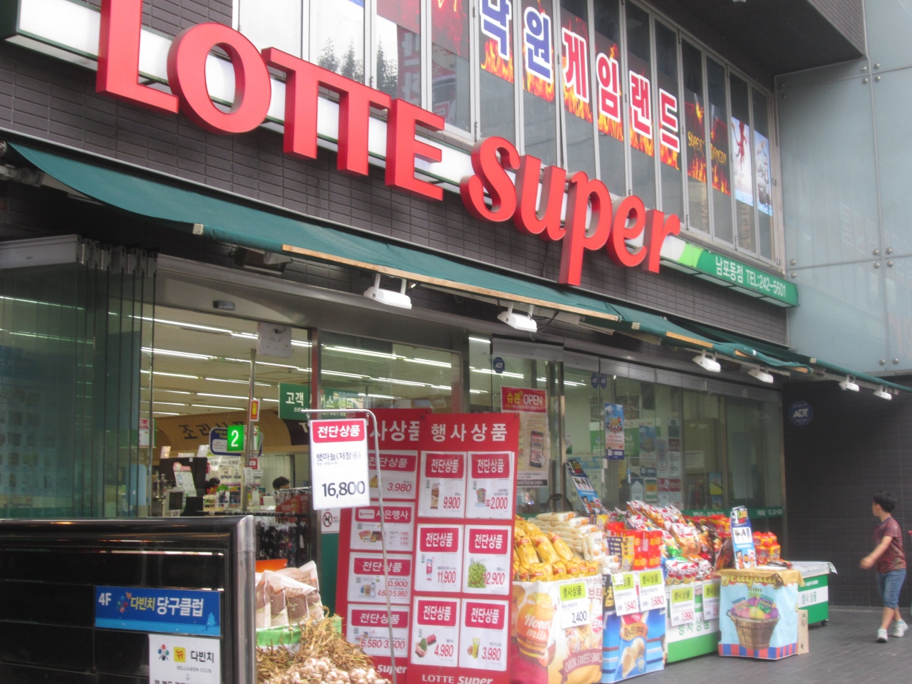 南浦洞の商店が多くある場所にある小さ目のスーパーです、ちょっとした飲物など食料品を買う時は便利です、コンビニより安く、品数が多いので利用すると良いです、店先に特売品と思われるお菓子類が並んでいました、店内のお菓子類はロッテ製品が多いようです。