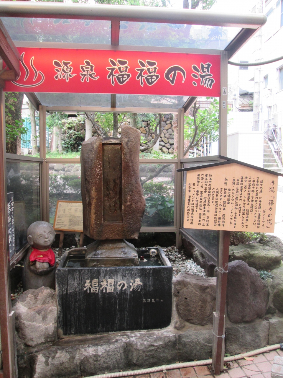 熱海市街中心にある熱海銀座商店街の中にあります、佐次郎という者の邸内にあったことから佐次郎の湯ともいわれてました、以後、眼病に効くということで別名目の湯と言われるようにもなったようです、熱海七湯のひとつとして観光客が散策中に寄るようです。