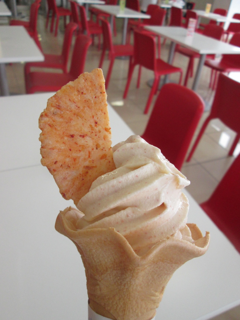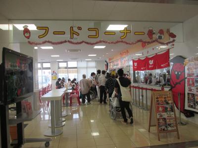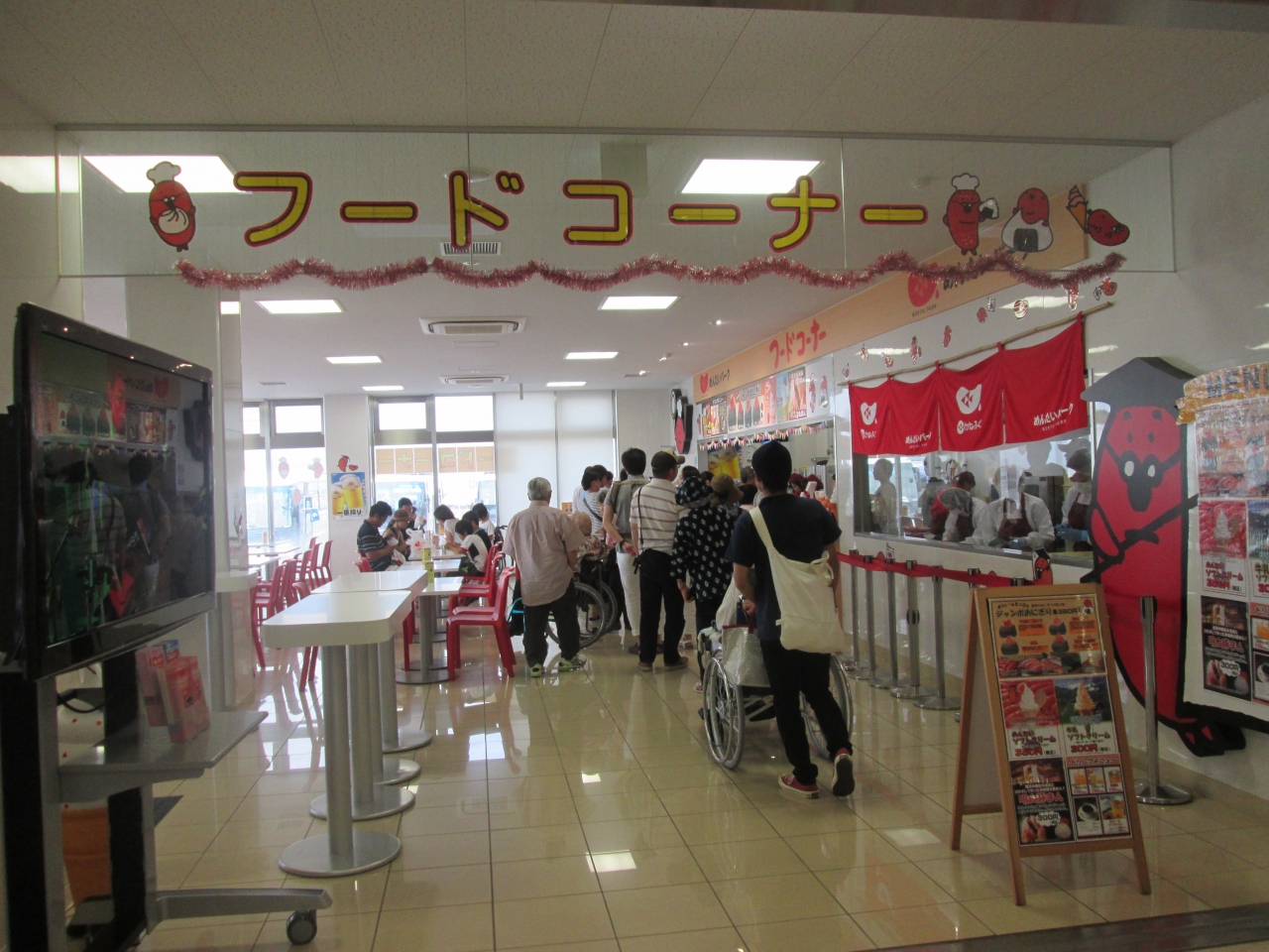 明太子メーカーのかねふく経営のめんたいパーク大洗にフードコーナーがあります、出来立ての明太子を使った大きなおにぎりや明太ソフトクリームをテーブルを利用して食べることができます、団体さんが来た時には並んで注文をすることになりますが、ここへ来た時には明太子の味を楽しむと良いでしょう。