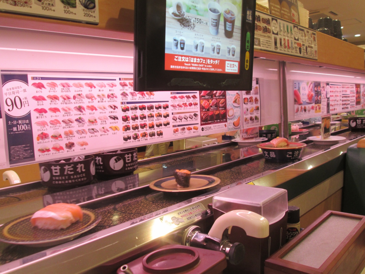 春日部市のけやき通り沿いにある回転ずしで、平日一皿90円ということで行って見ました、90円らしくかわいい寿司がお皿に乗っていました、他の回転ずしと同じように寿司以外の食べ物が回っていました、食べなかったですが200円のメロンが美味しそうでした、ざるそばやラーメンの注文ができます。