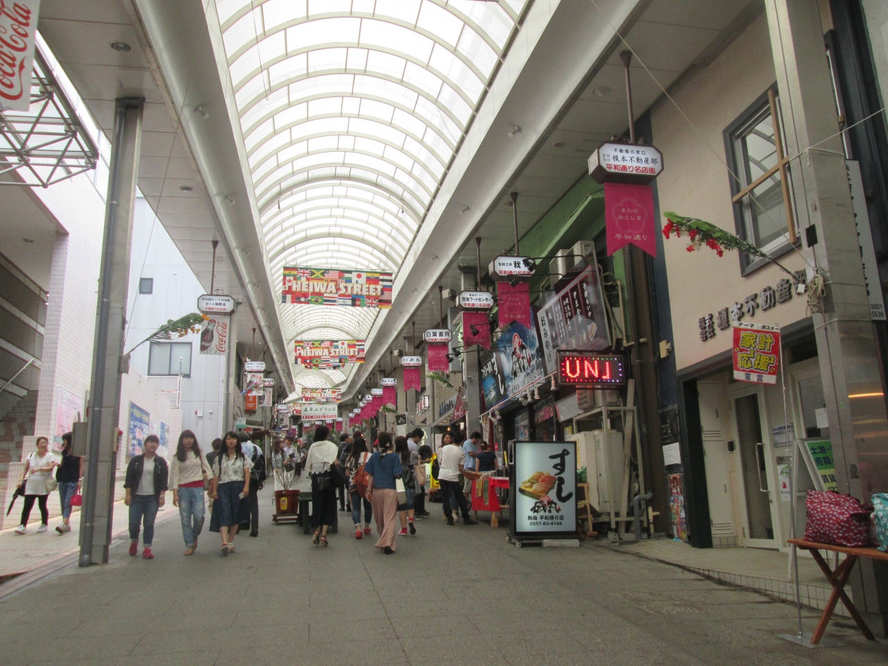 JR熱海駅前にあるアーケード通り、平和通り商店街と並行してます、温泉街や海岸に歩いて行く場合通ることが出来ます、そばや・寿司屋などの飲食店、ひものや海産物を扱うお土産屋、衣料品・雑貨店など20数店が軒を並べています、駅前なので時間調整でふらつくと良いでしょう。